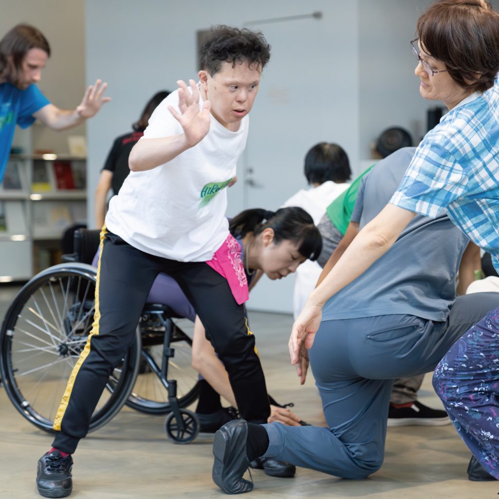 障がいのある人が「ダンスリーダー」として、自らワークショップを組み立て、進める方法を学びました。