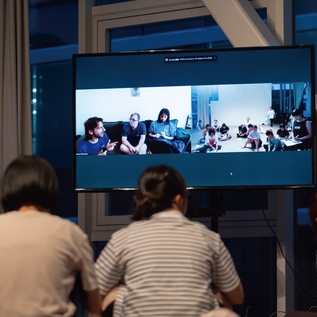 イギリスとオンラインでつなぎ、ワークショップの様子をDanceSyndromeに見てもらいました。